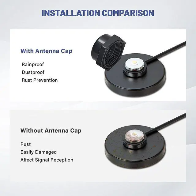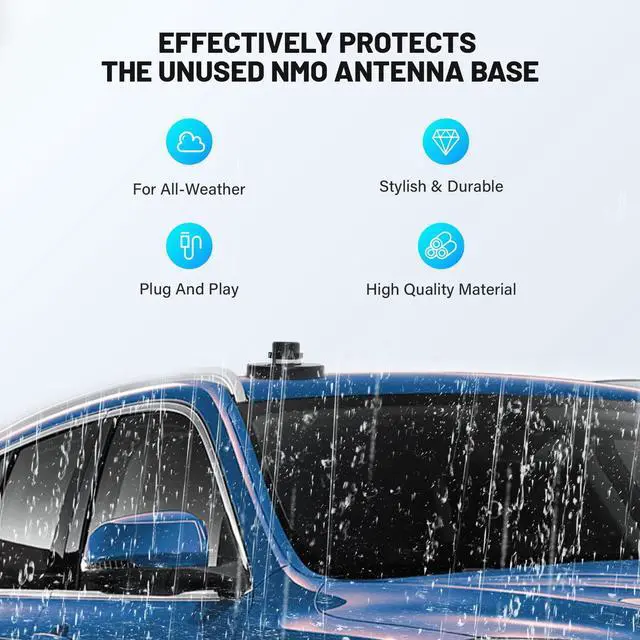 Waterproof: NMO antenna mount cap is necessary to protects the unused NMO antenna in all environments; The rain cap the best way to keep your NMO mount dry when washing your car, The design of O ring seal in the base to keep water out ^^