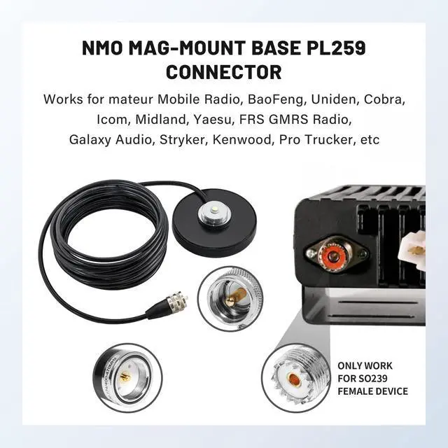 Excellent magnet strength: The NMO antenna mounts on most metal vehicle surfaces, powerful suction keep the antenna stay stably; The base bottom comes with soft rubber sleeve to prevent scratching, safe and durable ^^