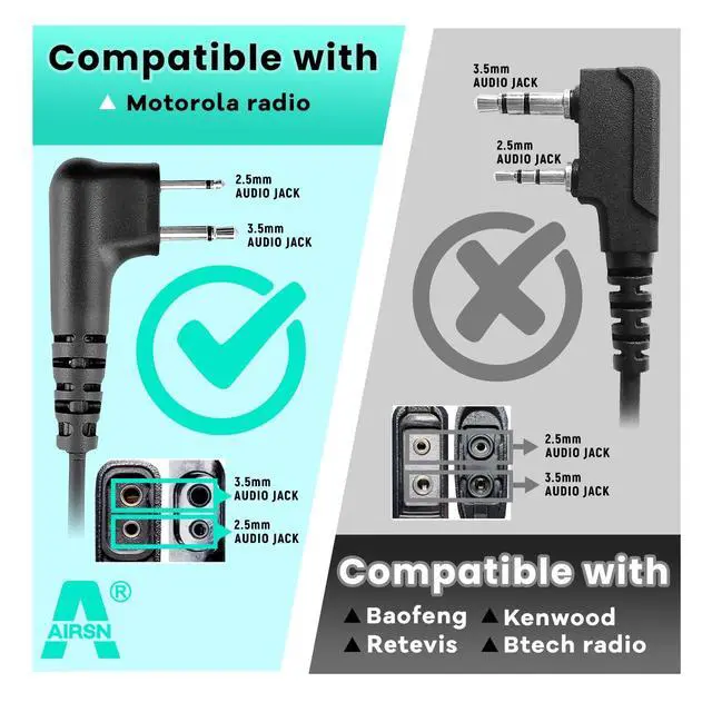 Strong PU cable material with soft transparent acoustic tube ^^ Transmit effectively and protect the eardrum from sound wave ^^ The Mic wire is 40 inches, and the Air-tube wire is 60 inches ^^ covert acoustic tube transmits more clear sound, makes the voice easily heard ^^ Compatible with M0torola CP185, CP200D, CLS1110, CLS1410, VL50, RDM2070D, DLR1020, DLR1060, RDU4100, BPR400, XU1100, PRO1150, MU12, Mag One etc. ^^ Don't compatible with Kenwood, Baofang, Midland walkie talkie.