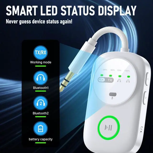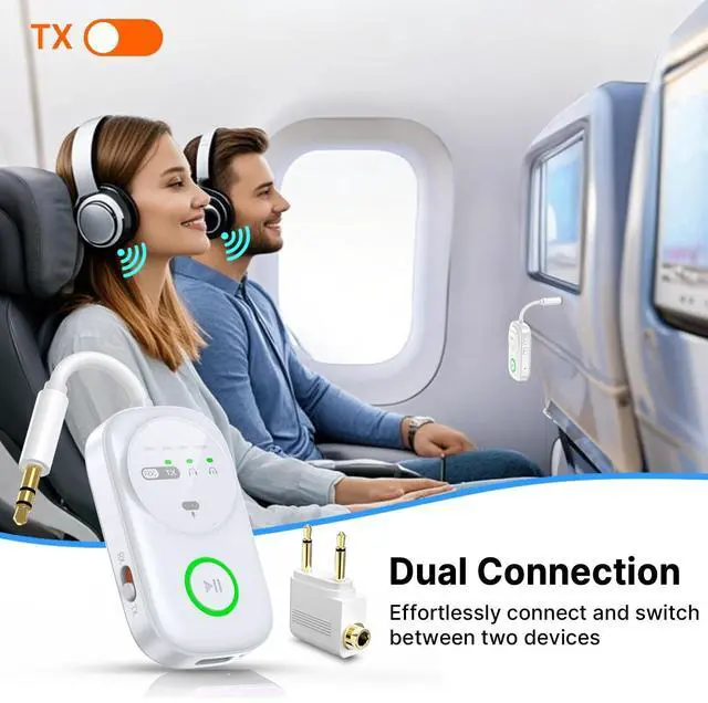 LED DISPLAY FOR TROUBLESHOOT: Clearly display the working mode (TX/RX), connecting status and remaining battery capacity, intuitive LEDs allow you to easily connect up to two devices and share the audio with a friend while you fly ^^ WHAT YOU GET & SHOP WITH CONFIDENCE: Included
