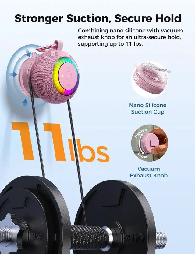 Bluetooth Speaker]: With the suction cup attached, it adheres to smooth surfaces like glass, making it suitable for shower or kitchen dance parties. When it is removed, the speaker becomes a more portable device that can be hung on a bag or kayak. Whether you are at home, outdoors, or on the go, this speaker can easily adapt to your lifestyle. ^^ [Advanced Bluetooth 5.4