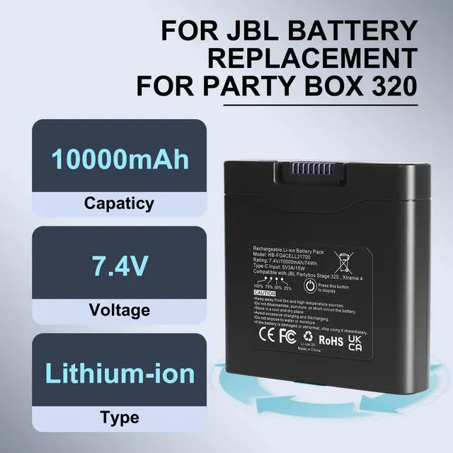 Precise compatibility: Designed specifically for JBL Battery 400, compatible with PartyBox Stage 320 and Xtreme 4 wireless Bluetooth speakers, plug and play, retaining original battery display function.