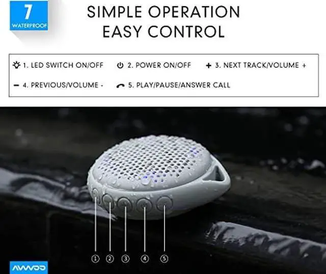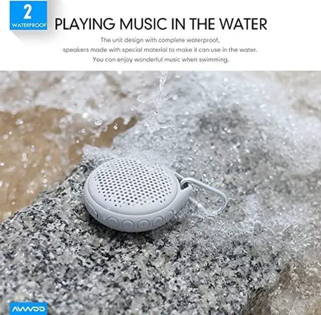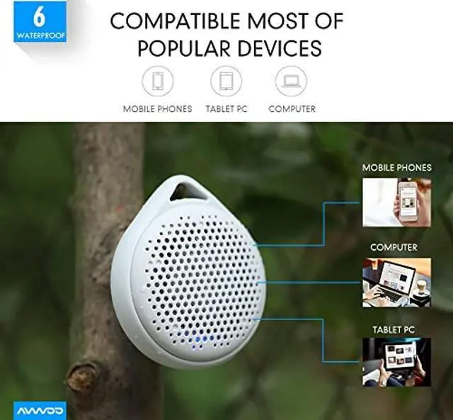 SMALL BODY BIG SOUND: AVWOO waterproof Bluetooth speaker comes with Superior 3D Stereo and 5W strong driver, which offers impressively clear crisp sound. Loud and powerful enough, this mini Bluetooth speaker allows you to enjoy a clear, well-balanced, full-range listening experience in camping, picnic and pool parties.