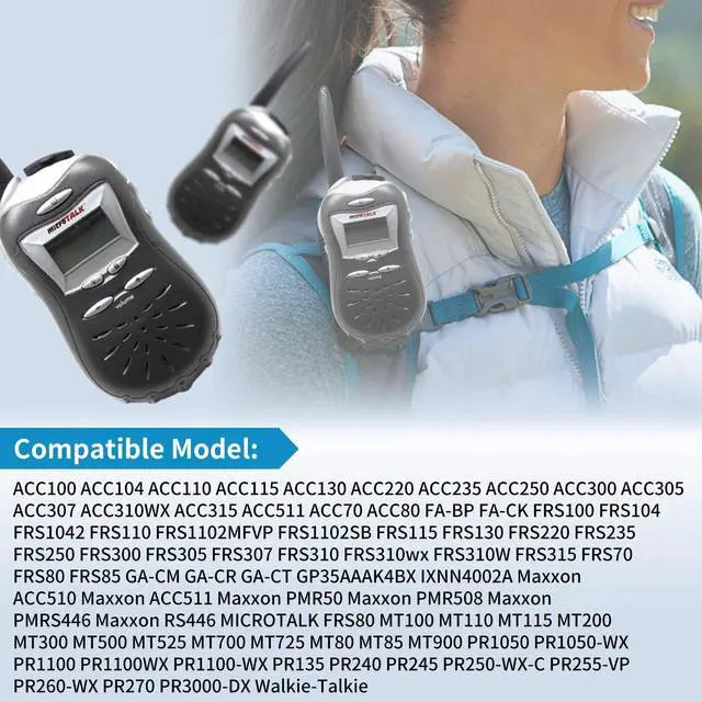 Compatible Model: This Replacement Battery model is FA-BP. Compatible with ACC100 ACC104 ACC110 ACC115 ACC130 ACC220 ACC235 ACC250 ACC300 ACC305 ACC307 ACC310WX ACC315 ACC511 ACC70 ACC80 FA-BP FA-CK FRS100 FRS104 FRS1042 FRS110 FRS1102MFVP FRS1102SB FRS115 FRS130 FRS220 FRS235 FRS250 FRS300 FRS305 FRS307 FRS310 FRS310wx FRS310W FRS315 FRS70 FRS80 FRS85 GA-CM GA-CR GA-CT GP35AAAK4BX IXNN4002A Maxxon ACC510 Maxxon ACC511 Maxxon PMR50 Maxxon PMR508 Maxxon PMRS446 Maxxon RS446 MICROTALK FRS80 MT100 MT110 MT115 MT200 MT300 MT500 MT525 MT700 MT725 MT80 MT85 MT900 PR1050 PR1050-WX PR1100 PR1100WX PR1100-WX PR135 PR240 PR245 PR250-WX-C PR255-VP PR260-WX PR270 PR3000-DX Walkie-Talkie. ^^ Higher Quality Grade A Premium