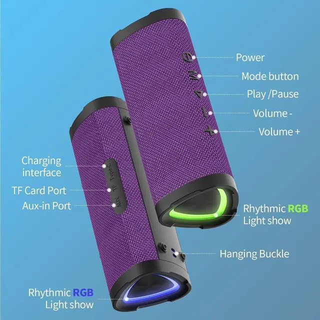 Vanzon Bluetooth Speakers V40 Portable Wireless Speaker V5.0 with 24W Loud Stereo Sound, TWS, 24H Playtime & IPX7 Waterproof, Suitable for Travel, Home&Outdoors,Hij-Purple