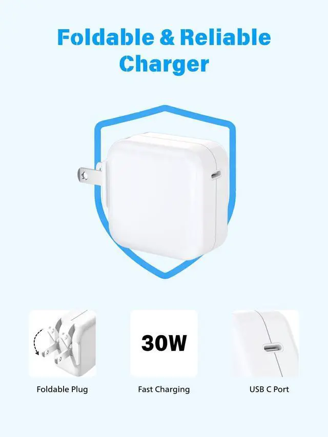 Wide CompatibilityCompatible with MacBook Pro 16 15 14 13 inch 2025 2024 2023 2022 2021 2020 2019 2018 2017 2016, M1 M2 M3 M4 M5 MacBook Air 13 15 in 2025 2024 2023 2022 2020, MacBook Air Retina 13 inch 2020, 2019, 2018, MacBook Retina 12-inch Early 2017, 2016, 2015Compatible with iPad Pro 13 11 inch, iPad Air 13 11 inch, iPad Pro 12.9 11 inch, iPad 10, iPad Air 5 4, iPad Mini 6Compatible with iPhone 17, 17 Pro, 17 Pro Max, Air, 16, 16 Pro, 16 Pro Max, 16e, 16 Plus, 15, 15 Pro, 15 Pro Max, 15PlusAnd for all usb c port smartphone, laptop, tablet and other devicesWhat You Get30W USB-C Charger10Ft USB C to USB C Cable