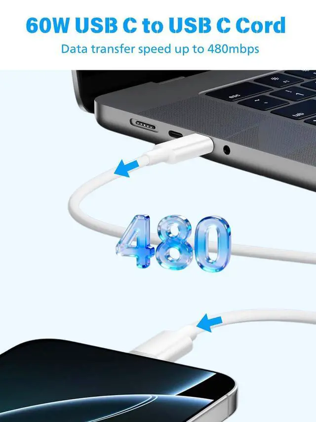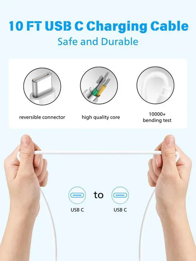 USB C Apple MacBook Charger Fast ChargingMax 30W USB C MacBook Air charger included apple fast charger block to the PD 3.0 fast charging technology supports maximum 30W output power, revive your MacBook Pro 15 inch to 100% in only 1h 35mins. Adaptable for Multiple ScenariosThis 10ft/3m super long usbc to usbc cable easily covers bedroom, sofa and office scenarios, let you can work and charge your Apple devices anytime, anywhere. Safe and Reliable USB C ChargerOur MacBook charger built-in smart chip safeguards to protect your Apple laptop or Apple cellphone from over-load voltage / current, short current and high-temperature, which can assured your device's battery won't be damaged during charging.