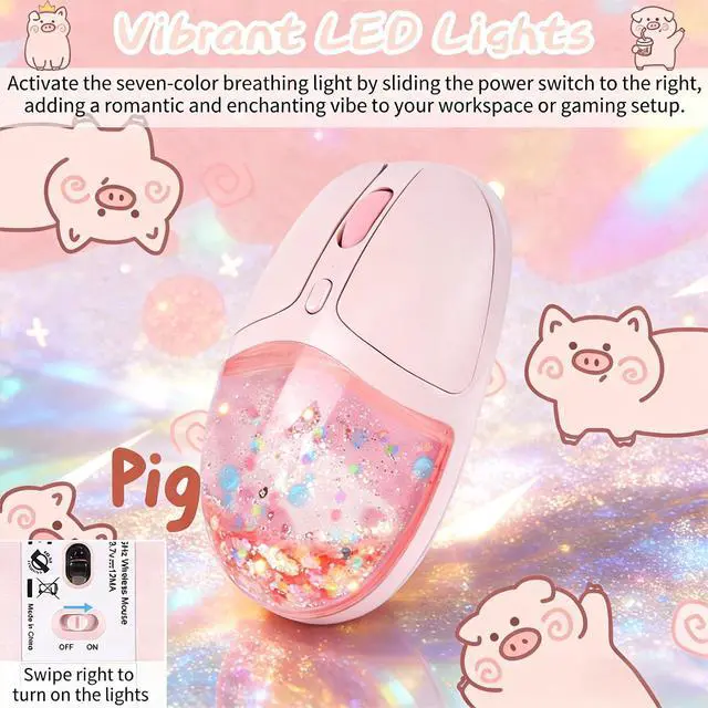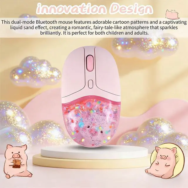 Design**: This **dual-mode Bluetooth water mouse** features adorable cartoon patterns and a mesmerizing liquid sand effect that creates a whimsical atmosphere, perfect for kids and playful adults.