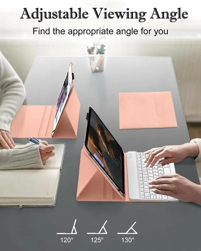 This setup allows you to place the tablet on your lap for reading, watching videos, or drawing. Switching between Tablet and Laptop modes becomes effortless. ^^ Premium Leather with Multi-view Angles CaseThe high quality case for tablet is made of premium vegan exterior composition leather, a protective keyboard cover gives your tablet 360front and back protection from accidental scratches. And cover has multiple viewing angles, you can choose your optimal angle to use your tablet. Type, sketch, view and readif you need to get something done on your tablet, choose from four versatile use modes to get it done.