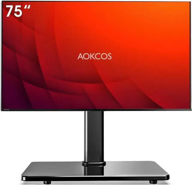 Wide Compatibility for 32"-75" TVsAOKCOS universal TV stand fits most TV brands of 32"-75" size screens, including popular sizes like 32"/43"/55"/65"/70"/75" flat or curved screens. With a 99 lbs weight capacity, the TV stand mount supports VESA pattern sizes from 100x100mm to 600x400mm. Please verify your TVs screen size, weight, and VESA size before purchasing for compatibility ^^ Down/Up Tilt & Stable SwivelThe 75 inch TV stand allows you to tilt down/up in the range of -2-10 by simply turning the screws on the back of the TV stand base, enjoy gaming or movie comfortablely.
