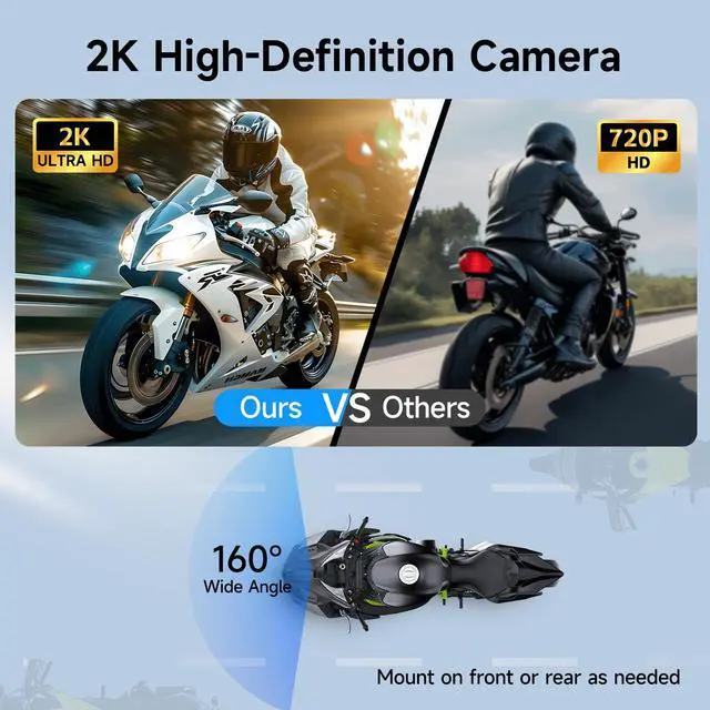 SINGLE LENS: Experience unparalleled front-road clarity with our dedicated 2K motorcycle dash cam. It captures ride detailsroad signs, license plates, and scenerywith crystal clarity. Boasting a 160 ultra-wide-angle lens, it effectively reduces blind spots, provides full front-road coverage, and ensures comprehensive ride protection.
