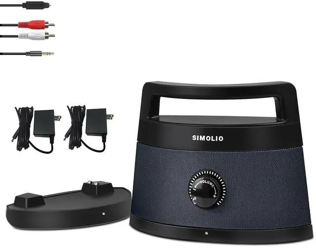The compact, portable design lets you take the personal wireless speaker anywhere: bedroom, kitchen, or patio. Power it your way with up to 8 hours of battery life, or keep it plugged in for all-day, uninterrupted use. ^^ Senior-Friendly Operation - Adjust volume or EQ modes instantly with oversized buttons. No complex setup - just plug the transmitter into your TVs audio port (supports Samsung, LG, Vizio, Sony, Philip, TCL and more TVs via optical/RCA/AUX).