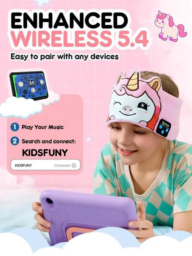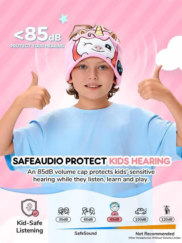 • Fun and Safe DesignOur Kids Headphones Wireless Headband features a cute pattern that will delight your little ones. These toddler headphones are designed with both fun and safety in mind, making them the ideal choice for children aged 3-5. And Volume is limited to 85 decibels, ensuring protection for young ears against potential hearing damage, allowing parents to have peace of mind while their children enjoy audio.
