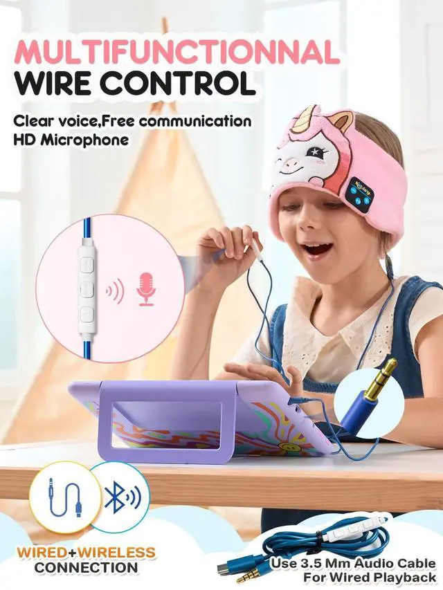 • Versatile Connectivity OptionsEnjoy the convenience of Bluetooth and wired 3.5mm jack playback with our kids headphones. This flexibility allows for easy connection to various devices at home, school, or while traveling, ensuring your child can listen to their favorite content anytime, anywhere.
