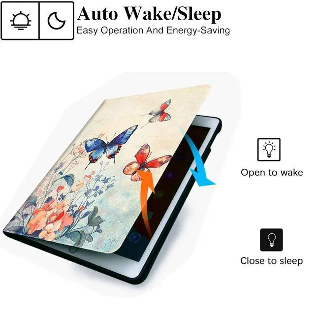 RUUHLJLET Case for iPad 10th Generation (2022) 10.9 Inch iPad Cover,Automatic Wake/Sleep,Adjustable Stand Protective Cover for Apple iPad 10.9" - Retro Flowers and Butterflies