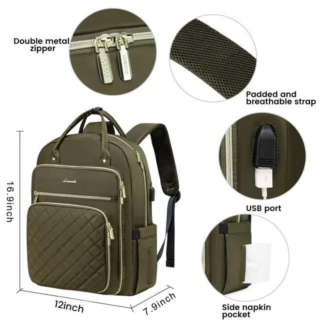 Lightweight Womens Backpack: Only 1.73 lbs. External dimensions of the backpack purse: 16.9 x 12 x 7.9 inches (H x L x W). Can hold laptops of 15.6 inches and below. Perfect as a work, college, and travel backpack ^^