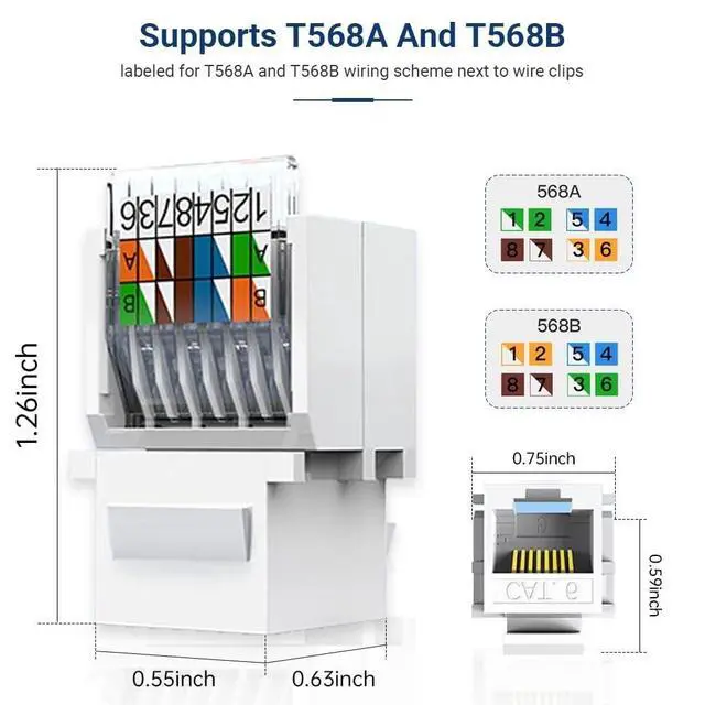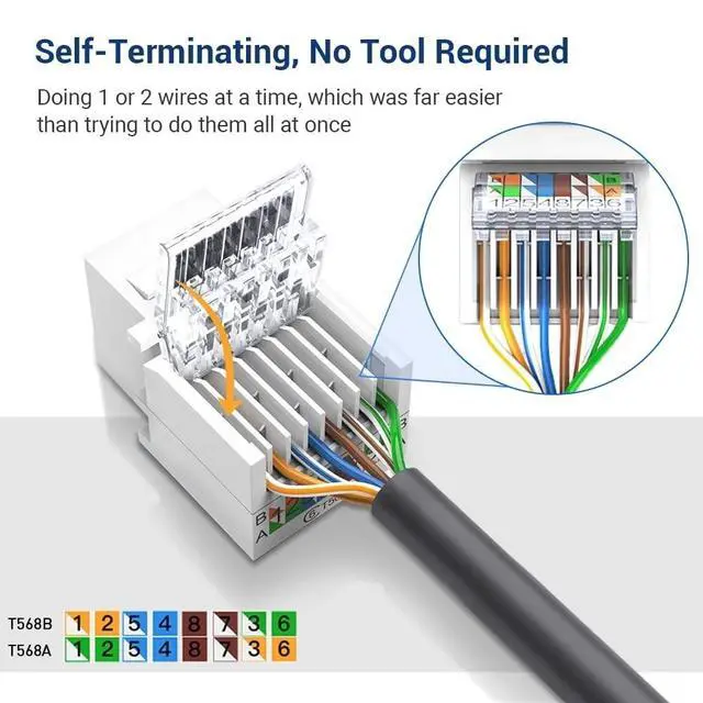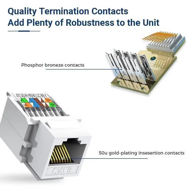 Effortless Installation: Our ZoeRax toolless UTP CAT6 Keystone Jack features a simple setupjust align the wires with the color-coded labels, insert, and secure with the snap-down cover.