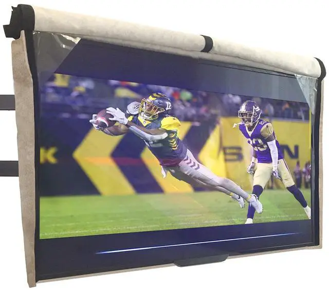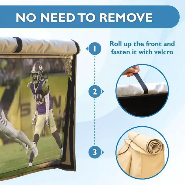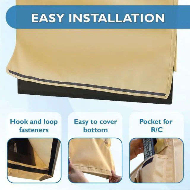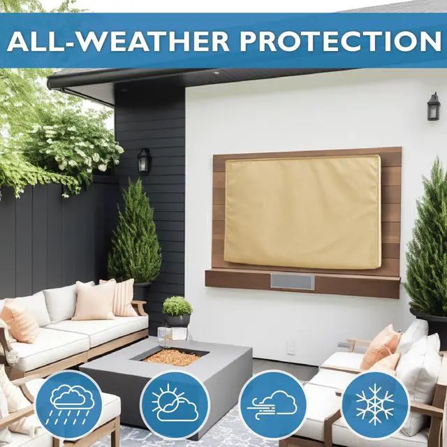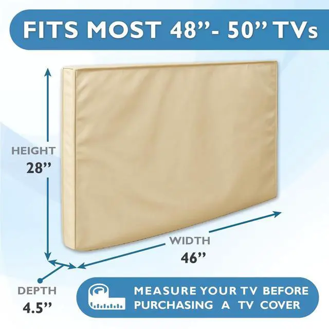 WEATHERPROOF, HIGH QUALITY MATERIAL This Outdoor TV cover is made of heavy-duty 600D Oxford material with polyester backing and soft interior. The TV cover will keep your TV safe from any weather including rain, dust, sand, snow and extend the life of your outdoor TV. ^^ WRAP-AROUND COVERAGE - Provide 360 degrees protection for your TV outside. The fasteners are hidden to prevent water intrusion and completely seal your TV. ^^ DIMENSIONS OF 48-50