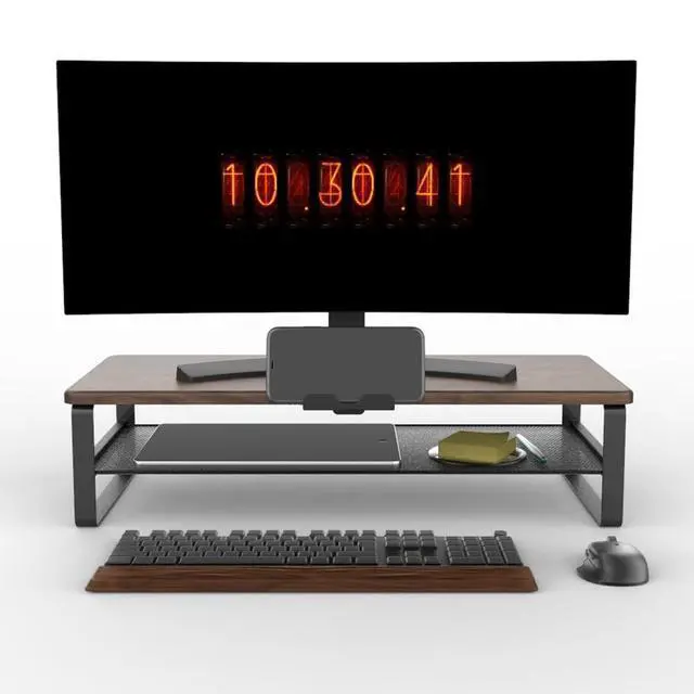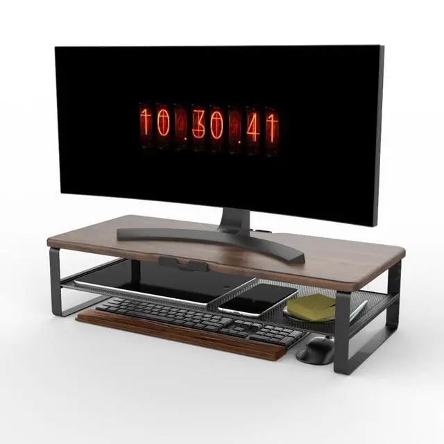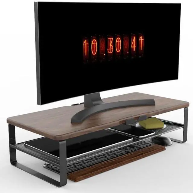 Doowiit 2 Tier wood monitor stand riser with phone holder and Cable Management ideal for home and office, etc. Raise your screen to a proper position to relieve eye strain and neck and back pain, enhancing work efficiency.