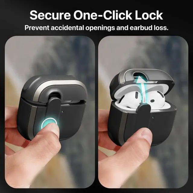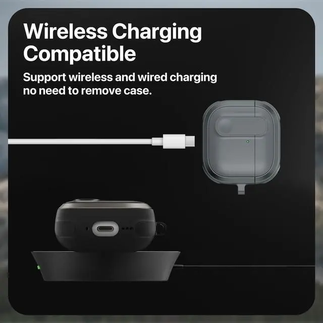 Odyssey AirPods 4 case with lock is compatible with most charging method. ^^ [Locking Mechanism & One-Touch Lid Opening] - The Odyssey AirPods 4 locking case prevents accidental lid openings and potential loss of your AirPods. Access them easily with a single press, providing a smooth, auto-open experienceeffortless and ready whenever you need it. ^^ [Come with Robust Carabiner Hook] - Conveniently attach your AirPods 4 to a backpack or belt loop using the included metal carabiner keychainyour AirPods are always secure and ready to go wherever you are. Get your rugged, protective, and versatile AirPods 4 case now!