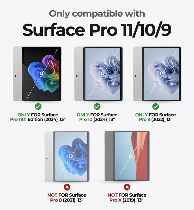 [Enhanced Compatibility & Important Notes] - Designed exclusively for 13-inch Microsoft Surface Pro 11 (2024), Surface Pro 10 (2024), and Surface Pro 9 (2022). NOT compatible with Surface Pro 8 or Surface Pro X! Surface Pro tablet and Surface Pen are NOT included! Weight Notice (Please