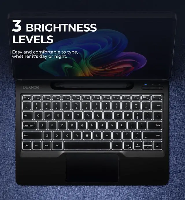 Seamlessly supporting multi-finger gestures, it opens up a new realm of control with actions like tap, pinch, scroll, swipe, and more. Navigate through tasks with unparalleled speed, whether you're editing documents, browsing the web, or crafting presentations. ^^ [Long-lasting Rechargeable Battery & Backlit Keys] Type comfortably anytime, anywhere with the solid white backlit keys featuring 3 adjustable brightness levelsperfect for late-night work, study sessions, or low-light environments. The long-lasting rechargeable battery supports up to 12 hours with backlight on, 250 hours with backlight off, and 800 hours of standby on a single charge. Fully recharges in just 3.5 hours via USB-C, ideal for those who need reliable all-day performance. ^^ [Dual Bluetooth Channel & Exclusive Word-delete Key] Built for enhancing productivity. With dual Bluetooth channels, the keyboard case connects to two devices at the same time, allowing seamless switching between work and entertainment in seconds. The exclusive one-press word-delete shortcut key (F12) removes an entire word instantlyno key combinations needed. The responsive scissor-switch keys register smoothly with a light press for quiet, interruption-free typing.