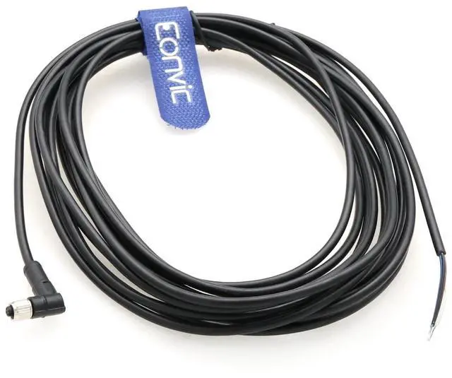 Eonvic Industrial M5 A-Code Right Angle 4 Pin Female Connector to Open End Moulded IP67 Waterproof Aviation Industrial Sensor Connection Cable 5M