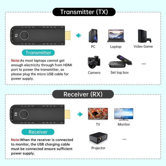 MT-VIKI 4K IN /1080P OUT wireless HDMI transmitter and receiver is the latest version, supports 4K or 1080P (input) on TV or monitor at 1080P @60z (output) from up to 100ft/30m (open space). ^^ This wireless HDMI transmitter and receiver can work with