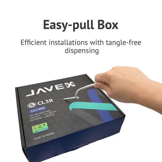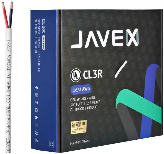 Premium OFC speaker wire JAVEX speaker wire adopts 16-gauge 99.9 % OFC (Oxygen-Free Copper), which offers stable signal frequency, ensures high fidelity sound quality, and further provide corrosion resistance. ^^ UL CL3 Rated for in-wall & outdoor installations JAVEX speaker wire is made with CL3R/CL2 rated materials to resist fire for outdoor and in-wall installation. ^^ Durable and reliable The premium PVC jacket design of the speaker wire is smooth and durable. It helps to deliver high-quality and long-lasting undistorted signals connection in home A/V application as well as automotive, education or business set-ups.