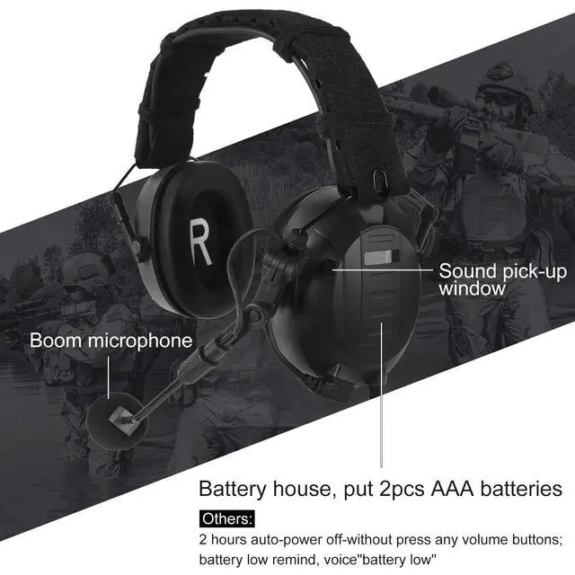 PZYPYM AC-536 ANR Pro-Comms Electronic Hearing Protector Walkie Talkie PTT Headphone,Earmuffs Noise-Canceling Boom Microphone Radio Headset,Noise Reduction Rating NRR 26dB (k1 plug for baofeng)
