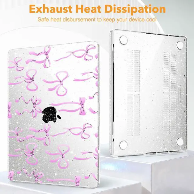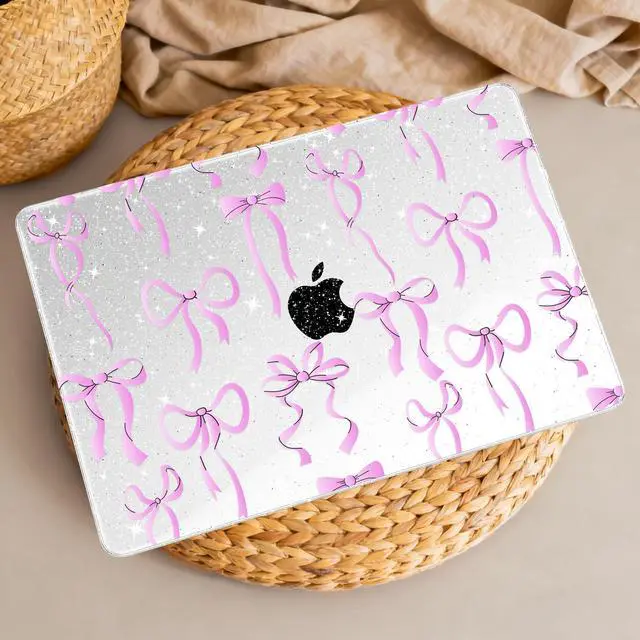 ICEKEE for MacBook Pro 16 inch M5 2026 2025-2021 Release M5 M4 M3 M2 M1 Pro/Max, A3429 A3428 A3402 A3186 A2991, Plastic Hard Shell Case & Keyboard Cover & Screen Protector, Rose Bow-Glitter