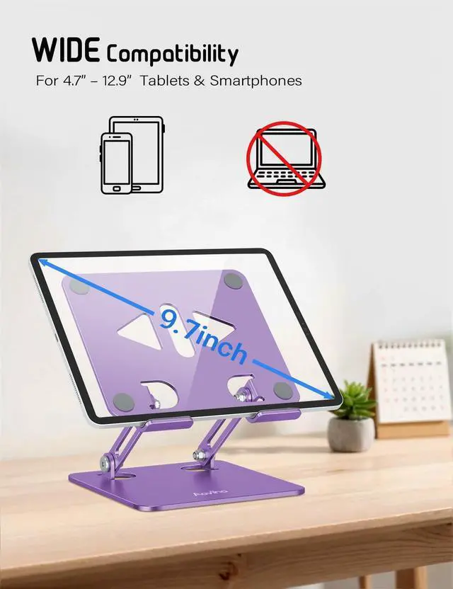 WIDE COMPATIBLE: The Aoviho tablet stand holder for office desk perfectly works with 4.7 - 12.9 inch tablets, cell phones, and e-readers, such as new 2024 / 2022 / 2021 iPad Pro 11 / 12.9 / 13 inch, iPad 10.9, iPad Air 5 / 6/4/3/2, iPad mini 6/5/4/3/2, iPad Pro 9.7 / 10.5, Kindle, Surface Pro7/6/X, Galaxy Tab, Android tablets, iPhone 15 Pro Max, iPhone 14 Pro Max, iPhone 13, iPhone 12/11. ^^ ROBUST and