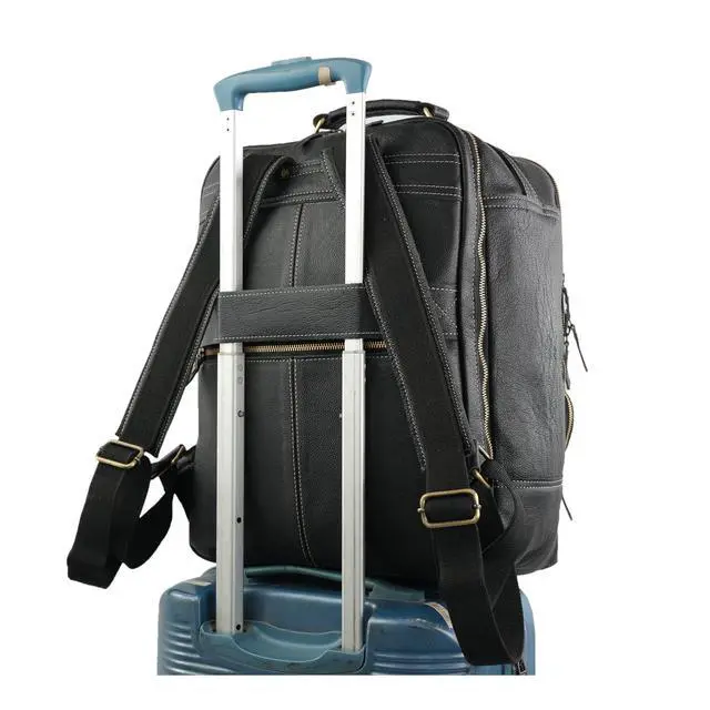 VERSATILE CARRYING OPTIONS: Adjustable padded leather shoulder straps ensure comfortable all-day wear - reinforced top handle enables briefcase-style carry - integrated trolley sleeve slides over luggage handles for seamless airport navigation ^^ SPACIOUS 31L