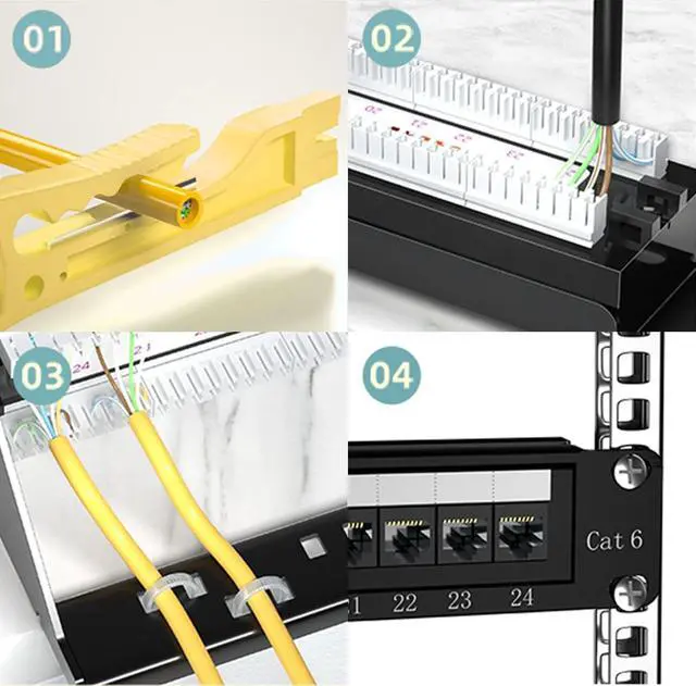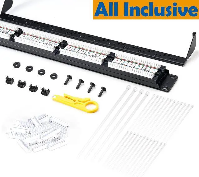 [Usage]: Install this Ethernet patch panel in universal 19" racks, cabinets, or wall mount brackets with 1U ( 1.75" ) standard height ^^ [Compatibility]: CAT6 24 Ports Wall Mount Patch Panel for 10-Gigabit ethenet, accepts 22-28 AWG Cat6/ Cat5e/ Cat5 solid and stranded UTP network cable.