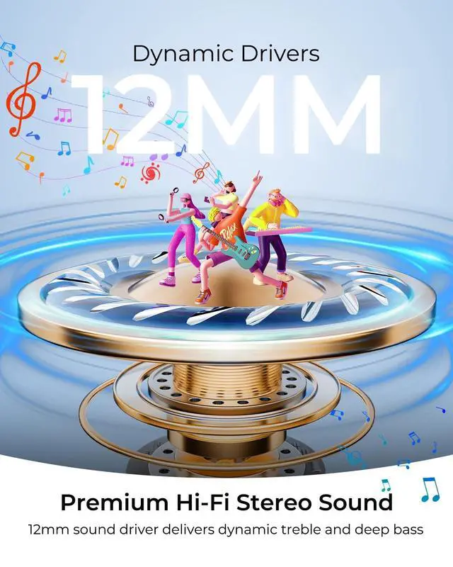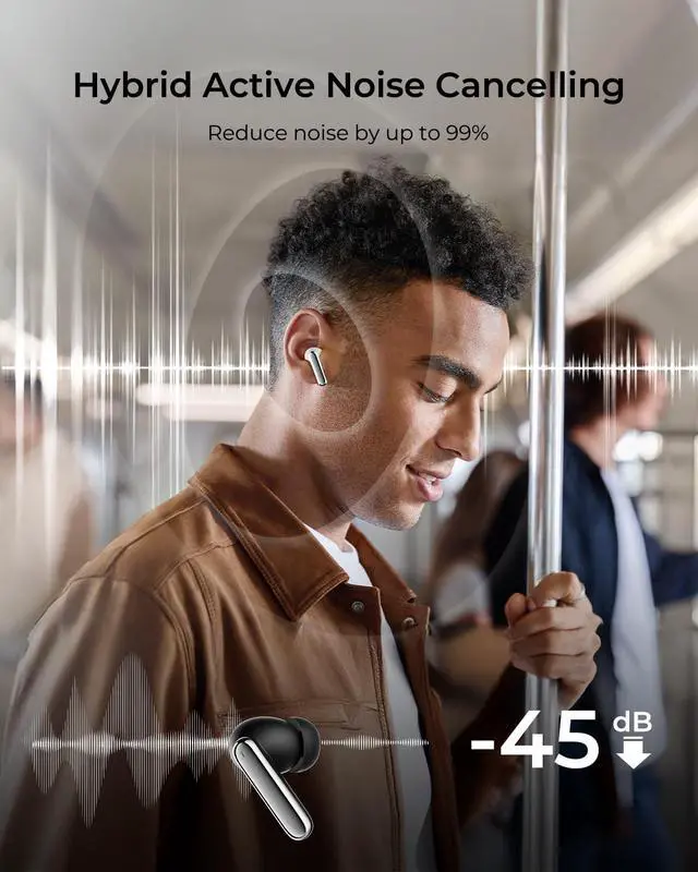 Hybrid Active Noise Cancellingwegear Bluetooth headphones offer up to 45 dB of noise cancellation, effectively blocking out the noise of subway trains during your commute. Stay focused on your favorite music without any external distractions ^^ 6-Mic AI Clear Calls6 beamforming mics and AI noise reduction to capture your voice clearly and reduce ambient noise. Whether on a busy street, in a cafe, or on the subway, enjoy crystal-clear calls effortlessly ^^ Premium Hi-Fi Stereo Soundwegear wireless Bluetooth earbuds feature powerful 12mm drivers that deliver deep, punchy bass and clear, detailed treble for an immersive audio experience.