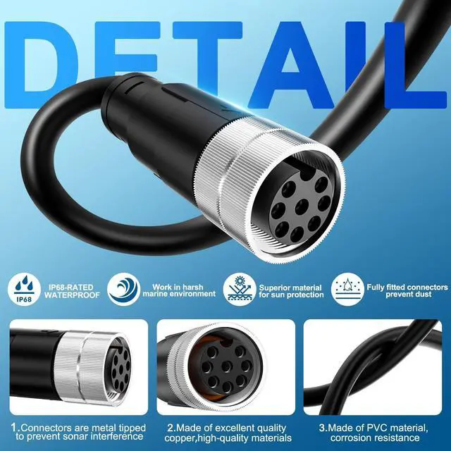 ^^ [Superior Material]: Made of excellent quality copper, the sheath is made of PVC (Polyvinyl chloride) material, it has superior performance and corrosion resistance, IP68-rated waterproof connectors are metal tipped to prevent sonar interference. Meeting or exceeding OE specifications.