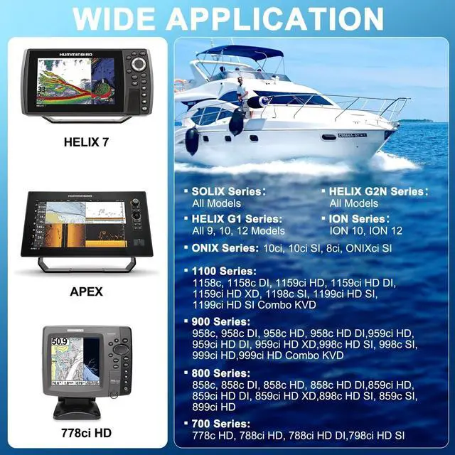 Humminbird Helix Fish Finders]: This 720073-5 Ethernet Cable is compatible with all HELIX 15, HELIX 12, HELIX 10, HELIX 9, HELIX 8, HELIX 7 (G2N, G3N, G4N), all 1100 Series Models (1157c, 1158c, 1158c DI, 1197c SI, 1198c SI), 900 Series Models (958c, 958c DI, 998c SI), 800 Series Models (858c, 858c DI, 898c SI), 700 Series Models (778c HD, 788ci HD, 788ci HD DI, 798ci HD SI). ^^ [720073-5 Boat Ethernet