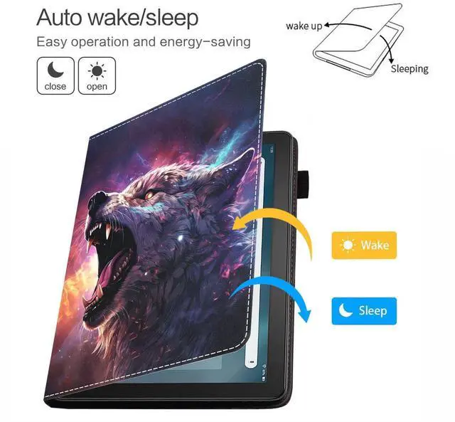 FVAENDHIO Case for Fire HD 8/Fire HD 8 Plus Tablet (12th/10th Generation, 2024/2022/2020 Release), Premium PU Leather Cover with Auto Sleep Wake, Wolf Howling