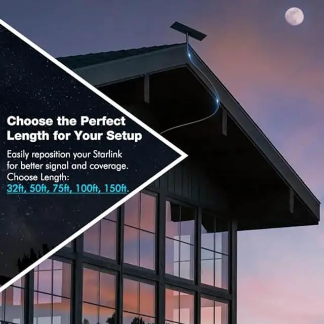 MULTIPLE LENGTHS FOR FLEXIBLE SETUP: Starlink Cable Gen 3, Choose from 32ft, 50ft, 75ft, 100ft, or 150ftthis Starlink Standard Cable lets you adjust your setup freely for the best signal. Whether you're at home or outdoors, get the right length for your needs.