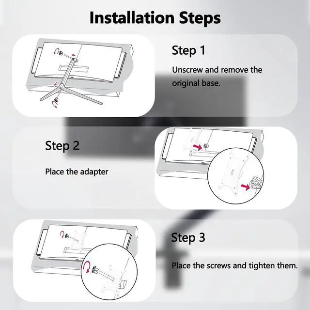 ^^ Supporting Hardware: We include 1 monitor stand, matching screws and washers ^^ Easy to installThis device is very easy to install. It does not require professional tools or complicated steps, and ordinary people can get started quickly.
