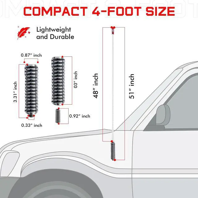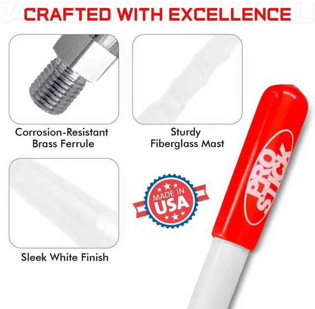 Prostick 4` Foot Fiberglass - White CB Radio Antenna with Heavy Duty Stainless Steel Spring
