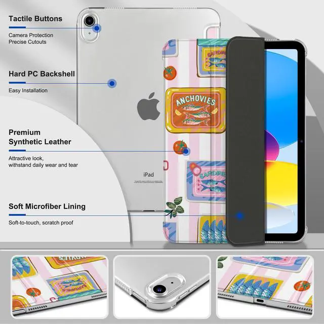 Model numbers: A2696, A2757, A2777. Not compatible with any other iPad models ^^ Auto Sleep/Wake Function -- Automatically puts your iPad to sleep when closed and wakes it up when opened, saving battery life. ^^ Trifold Stand -- Adjustable 3-fold design offers two viewing modes: one for media viewing and another for comfortable typing. ^^ Durable & Scratch-Resistant -- The case is made from high-quality PU leather and features a hard PC back, offering excellent protection against scratches and fingerprints. ^^ Transparent Hard PC Back & Soft Microfiber Interior -- The transparent, hard PC back allows you to display your logo while providing strong protection. The soft microfiber interior prevents scratches on your iPad screen and ensures safe handling.