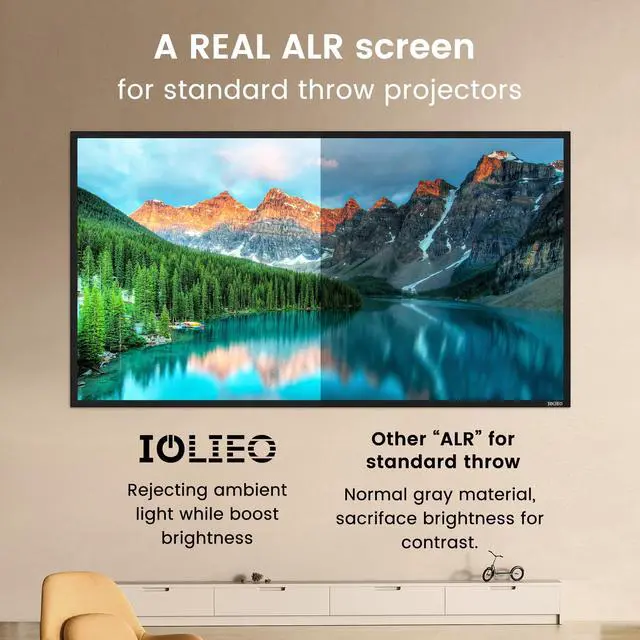 ALR Projector Screen for Standard Throw- Wall Mounted - TGI-120-A High Contrast 70% ALR High Brightness 2.7X Gain - 120 inch 16:9 Gray Screen - by IOLIEO