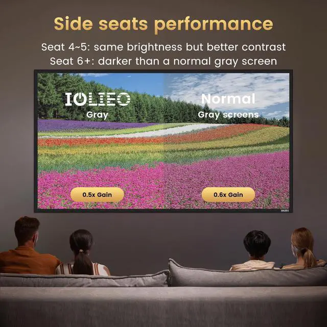 Brightness Boost and Limitation When viewed from center seats (within 4 seats), the brightness is significantly brighter than a normal gray screen. The gain of the center seats is up to 2.7X. For further seats, the screen may be darker than a normal gray screen. Most of the time, you can enjoy a brighter image, or use the brightness for a bigger screen!