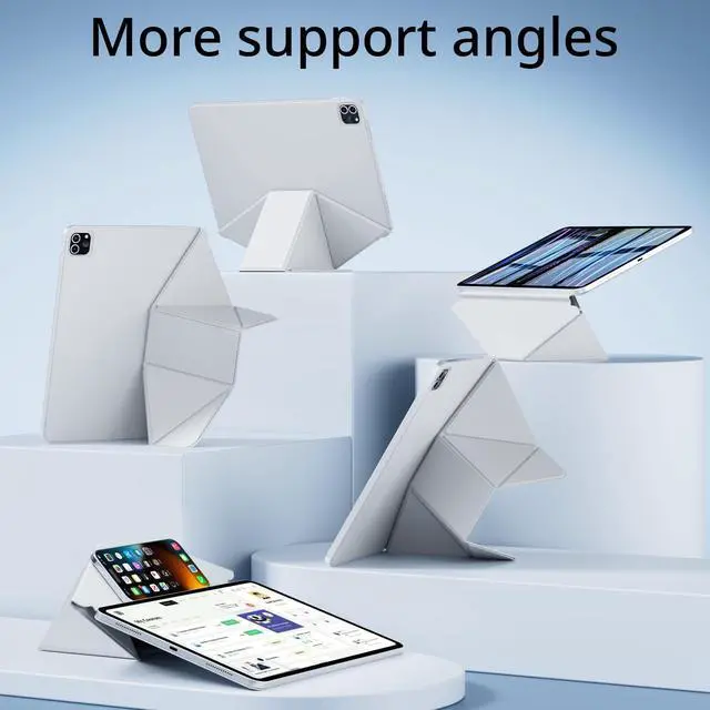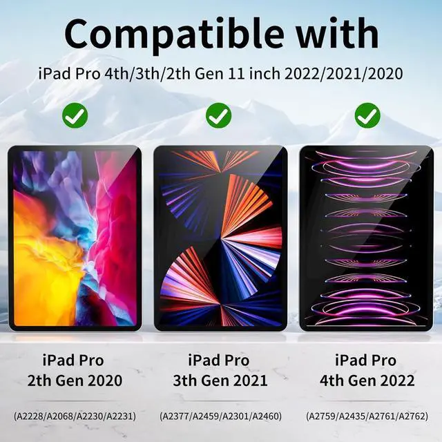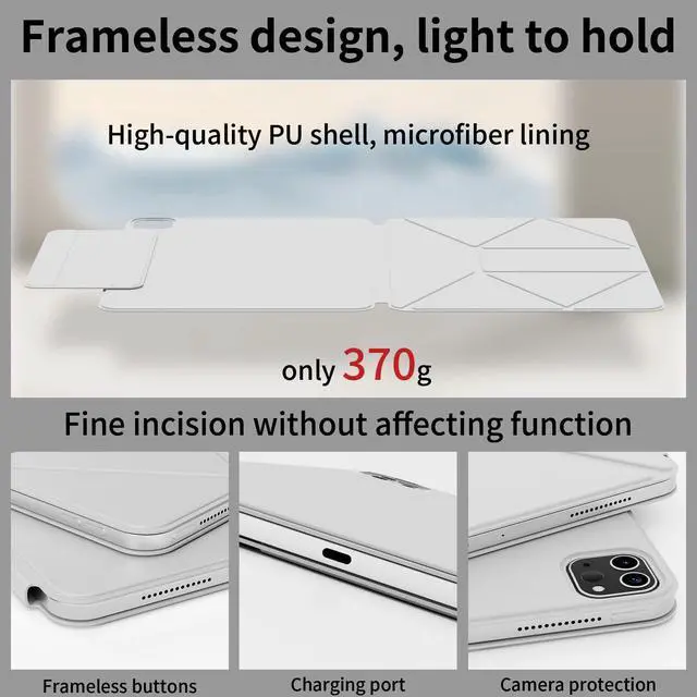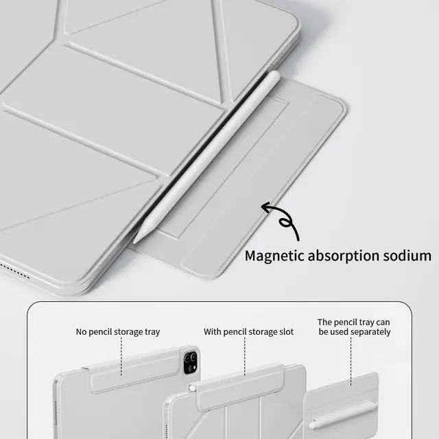 Please Note: Not compatible with any other iPad models. Please checked the model number at the back of your iPad. ^^ [6+Standing Angles] This iPad Pro 11 Case can be folded in different ways, providing six+ different standing angles for taking Zoom calls, web browsing, drawing, etc. The triangle structure of the multi-fold folio ensures a stable standing position, whether in portrait or landscape. ^^ [Upgraded Premium MaterialStrong magnetic] The Smooth microfiber liningskin-friendly PU leather is dust and scratch-resistant and Strong magnetic adsorption ensures your device attached firmly. The Frameless minimalistic design effectively reduces the weight of the protective case (only 360g), easy access to all the controls and features. This case is slim and easy to carry without the added bulk. ^^ [Magnetic removable pen tray] With magnetic design, the pen tray can be easily attached to the side of the iPad protective case for easy access at any time. It supports disassembly, and the pen tray can be put into the bag separately when going out to prevent pencils from being lost. ^^ [Auto Sleep/Wake Function] Stronger built-in magnets ensure the auto sleep/wake function engages quickly every time, help extend the standby time & battery life.