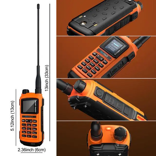 DywalTek SenhaiX SHX-8800 Pro 8W Ham Radio Handheld Walkie Talkies Long Range for Adults, IP56 Two way radio with Dual PTT Bluetooth APP Programming USB-C Rechargeable 2000mAh Battery Orange 1 PACK