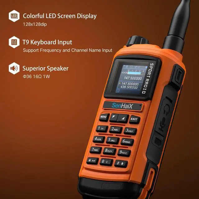 DywalTek SenhaiX SHX-8800 Pro 8W Ham Radio Handheld Walkie Talkies Long Range for Adults,IP56 Two Way Radio with Dual PTT Bluetooth APP Programming USB-C Rechargeable 2000mAh Battery Orange 1 Pack