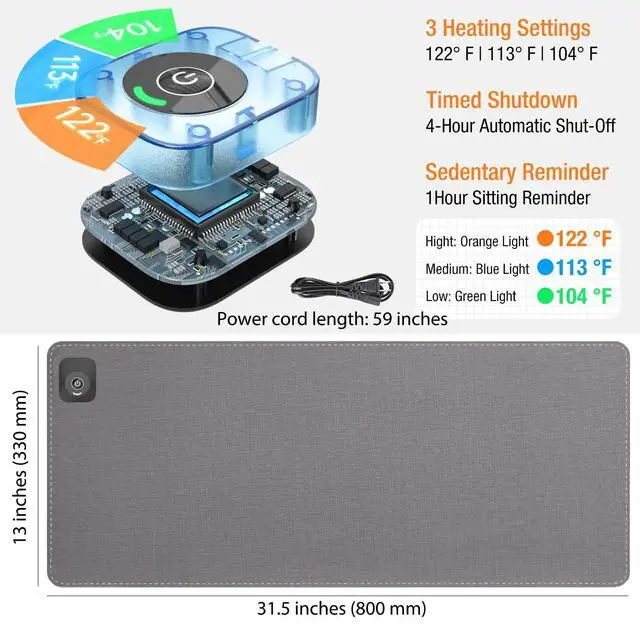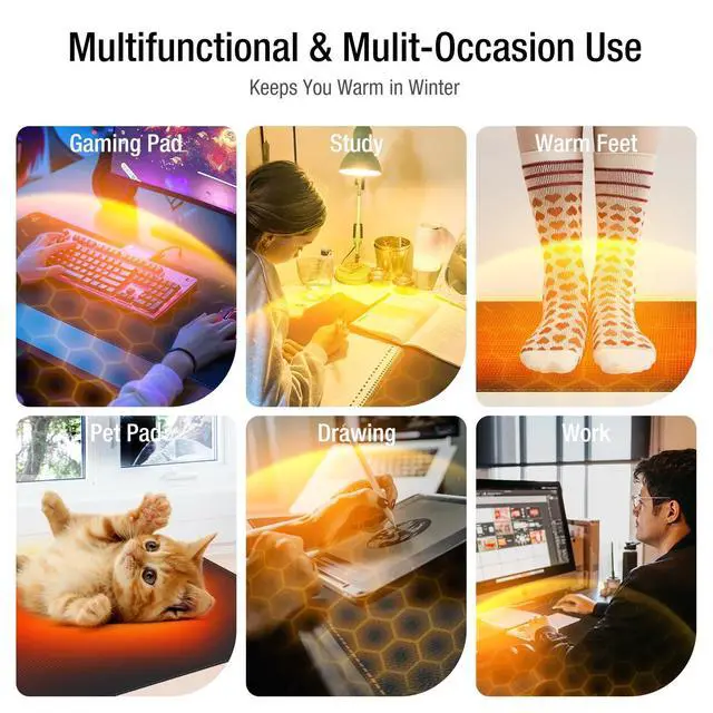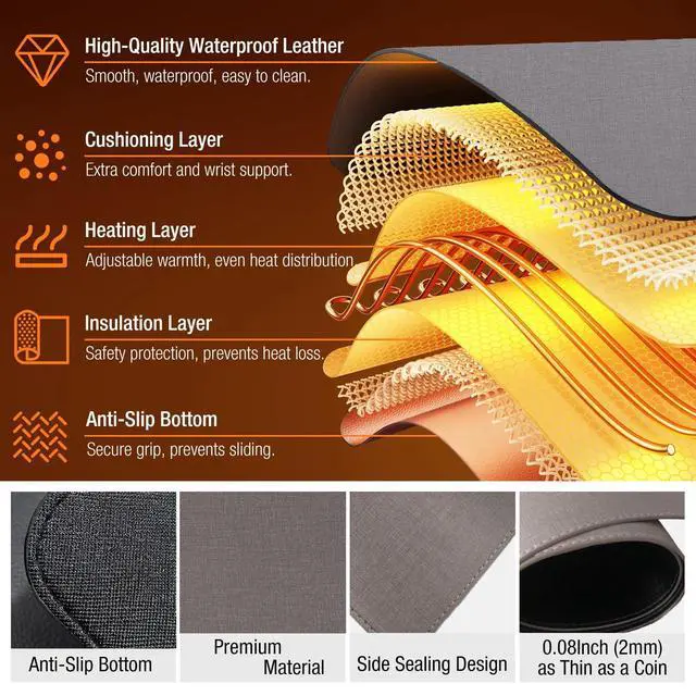 Large & Multi-Purpose Design: Sized at 31.5" 13" 0.08", this electric heating pad for desk fits most desktop setups. Works as a warm desk mat, mouse pad, and writing surface for office, home, or dorm ^^ Waterproof Surface &