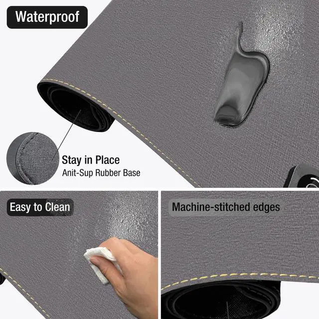 Non-Slip Base: Made of premium leather with a waterproof top and non-slip bottom to keep the pad securely in place. Easy to cleanjust wipe with a damp cloth ^^ Safe & Reliable Desk