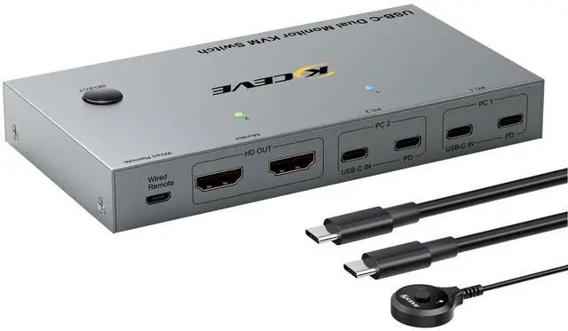 Universal Pro KVM Docking Station: Integrated Multi-Device ControlDesigned as a universal KVM switch for Mac and Windows. KVM switch 2 laptops offers plug-and-play compatibility with Windows, Vista, macOS, Linux, and Chrome OS. This versatile KVM switch 2 monitors 2 laptops USB C is perfect for professionals, office work, and home entertainment who need a reliable dual-monitor setup from their laptops ^^ Package & Dedicated SupportThe package includes: 1 x USB C KVM switch 2 monitor unit, 2 x USB-C cables, 1 x wired remote control ( 1.5 m), and manual. We back the KVM 2 monitor 2 laptop HDMI USB-C with a 12-month after-sales service and lifetime technical support. Our team is ready to assist with any questions.
